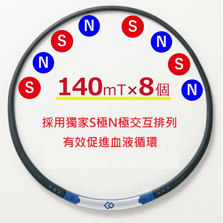 材質:矽膠、ABS樹脂、希土類永久磁石140mT(1400高斯)共8個N極S極交互配列